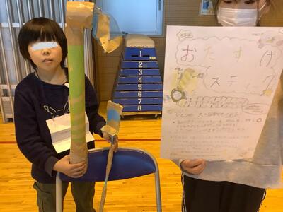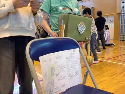 4年生は「認知症サポーター講習」からはじまり、視覚障害、聴覚障害について講師を招いて学んだり、車いす体験、アイマスク体験から学んだことなどを生かし、生活の中で困っていることを解消する「しあわせグッズ」の製作に取り組みました。