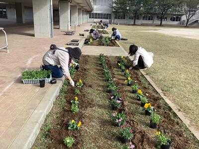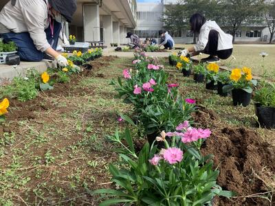 9月に「運動会前清掃」を行いました。その際に花壇の雑草を取り、きれいにしていただきましたので、気持ちよく花植えができました。