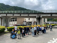 青空のもと、6年生の修学旅行のはじまりです。