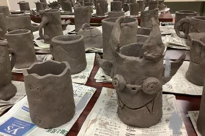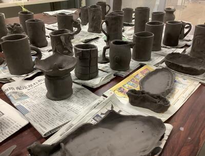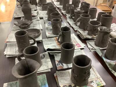 【6年生】陶芸教室 投稿: 管理者 (17:58) 6年生は講師を招いて「陶芸教室」を行いました。3クラス一斉に取り組みました。 卒業を強く意識し、今の思いが作品に込められている感じがします。 きれいな円筒形の作品が多いです。どのように作ったのかはお子様にきいてみてください。 ユニークな作品もありました。 お皿を作った児童もいました。和でも洋でもおいしい料理を盛りつけたいですね。 焼き上がりが楽しみです。 Tweet -