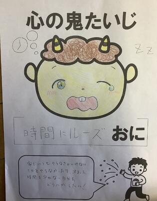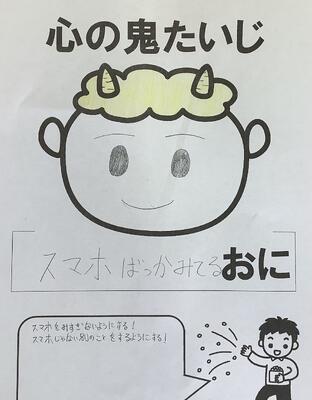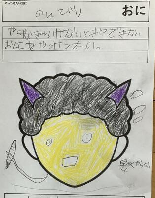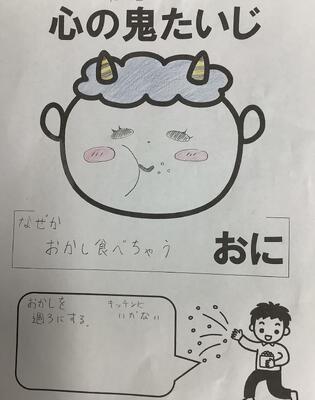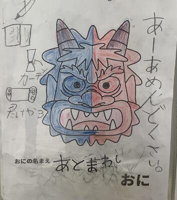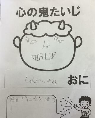 節分にちなんで、心に潜む鬼を退治すべくその姿を描きました。