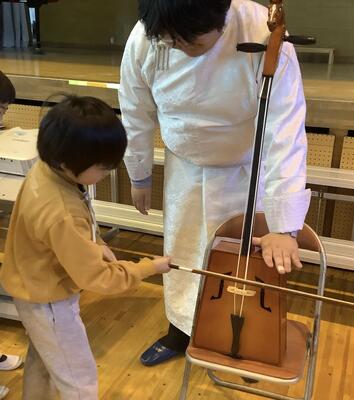 馬頭琴を弾かせてもらいました。