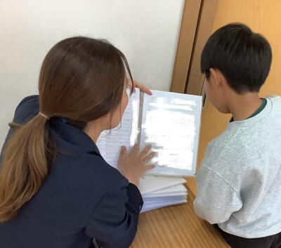 修了式のあと、各担任から1年間の成長したこと、これからの励ましの言葉を添え、3学期の通知表と修了証を渡しました。
