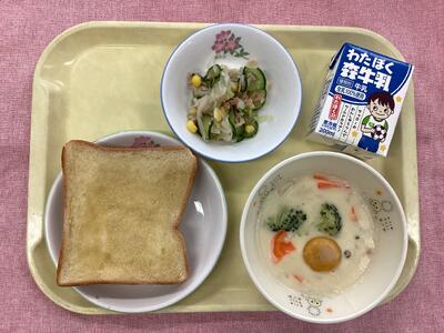 はちみつレモントースト・牛乳・森のシチュー・フレンチサラダ