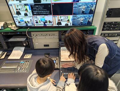 スタジオがあり、本格的な撮影収録や動画編集などの体験をしました。
